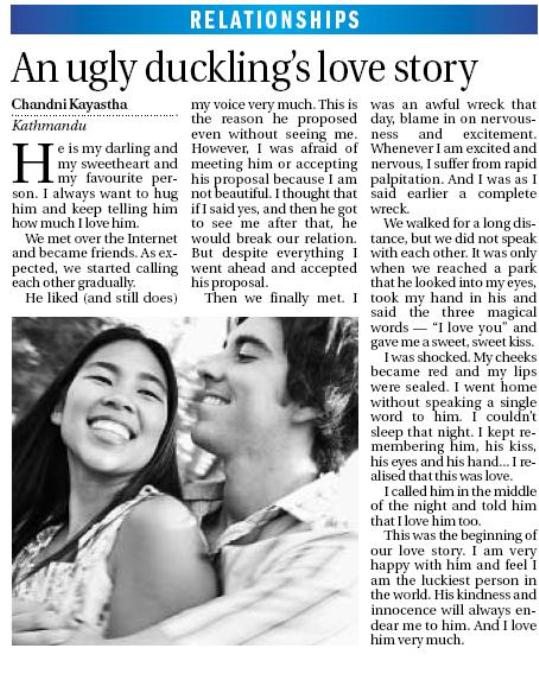 एक इ-प्रेमीको कथा रहेछ, द हिमालयन टाइम्समा! टाँसिहालुम न यहाँ!! हे हे हे :-)