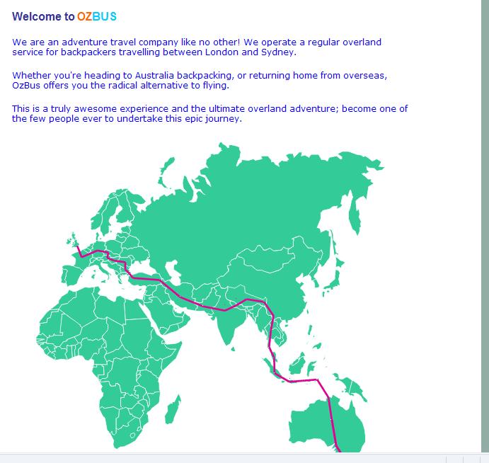 Here are some of the highlights of ozbus, London to sydney. Prague Vienna Budapest Transylvania Gallipoli Istanbul Turquoise Coast Bam Taj Mahal Corbett Tiger Reserve Kathmandu MT Everest Base Camp Bangkok Ko Samui Kuala Lumpur Sumatra Komodo East Timor Kakadu National park Ayers Rock Sydney