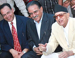 I think Girija is smiling at Prachanda's wife .......
