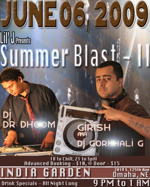 june 6 , saturday Dance and party with Girish a.k.a Gorkhali G in India Garden, Omaha, NE