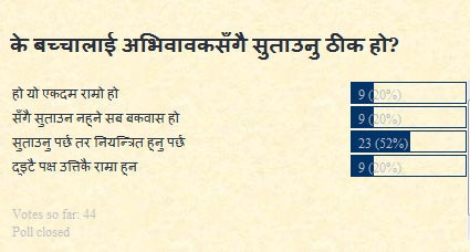 NOTE: The opinions here represent the opinions of the individual posters, and not of Sajha.com. It is not possible for sajha.com to monitor all the postings, since sajha.com merely seeks to provide a cyber location for discussing ideas and concerns related to Nepal and the Nepalis. Please send an email to admin@sajha.com using a valid email address if you want any posting to be considered for deletion. Your request will be handled on a one to one basis. Sajha.com is a service please don't abuse it. - Thanks.