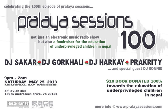 If you want to experience all of DC's finest Nepali DJ's under the same roof at the same time, then PRALAYA SESSIONS 100 is the event for you.