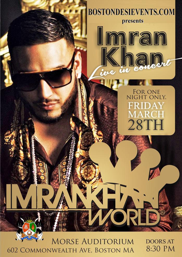 For the first time ever! Imran Khan Live in Boston. On Friday, 03/28/2013. Tickets and event details at BostonDesiEvents.com