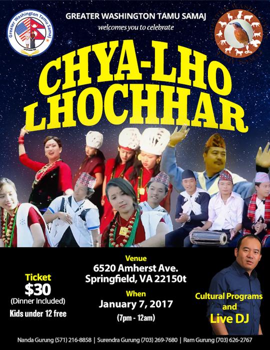 We Greater Washington Tamu Samaj (GWTS) is celebrating Tamu Chya - Lho Lhochhar on Saturday January 7th 2017 from 7:00 pm to 12:00 am. Celebration comprise of both Tamu and Nepali various Culture program, and Nepali Dinner. Everyone are welcome to celebrate with us!